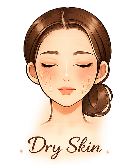 Dry skin occurs when the skin lacks enough moisture and natural oils. It can feel tight or rough and may sometimes appear dull or flaky if not properly hydrated.